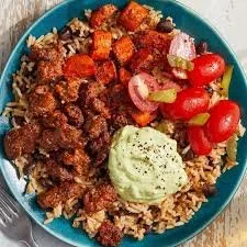 Your Choice of Protein, Rice, Beans, Lettuce, Mild Peppers, Fresh Avocado, Salsa