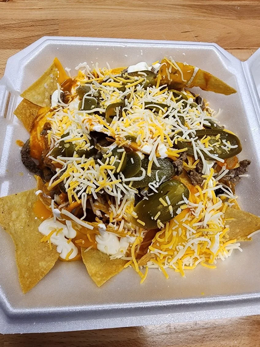 Fresh Tortilla Chips, Nacho Cheese, Your Choice of Protein, Jalapeños, Sour Cream, Salsa